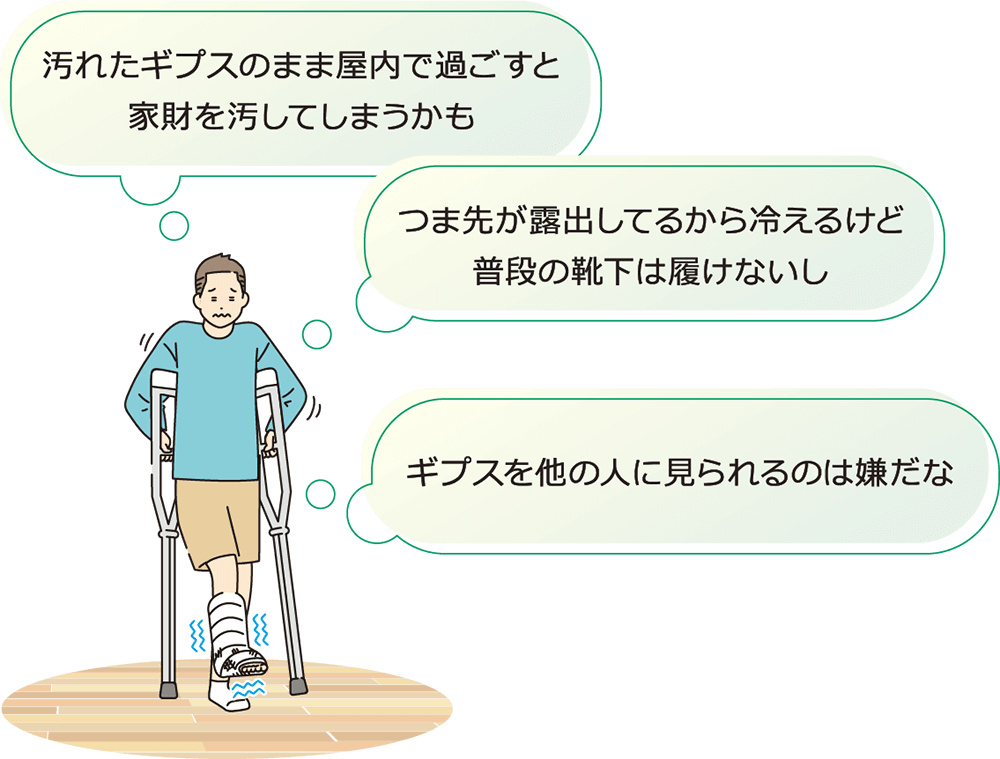 ギプスをつけた足にぴたっとフィット、