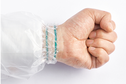 - 看護師さんと患者さんの快適をつくるシャワー専用品「末梢カテーテル保護カバー」です。
