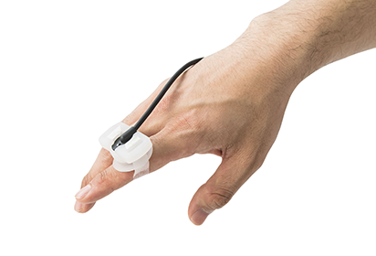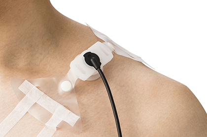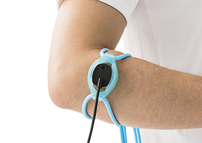 固定具〈ハネ付〉は、プローブの金属部が患部に直接当たらない構造のため、従来のプローブ接触による痛みを軽減します。また、自由に伸びるシリコン製の固定具〈D²〉は、固定しづらかった部位への装着を容易にし手間もかかりません。