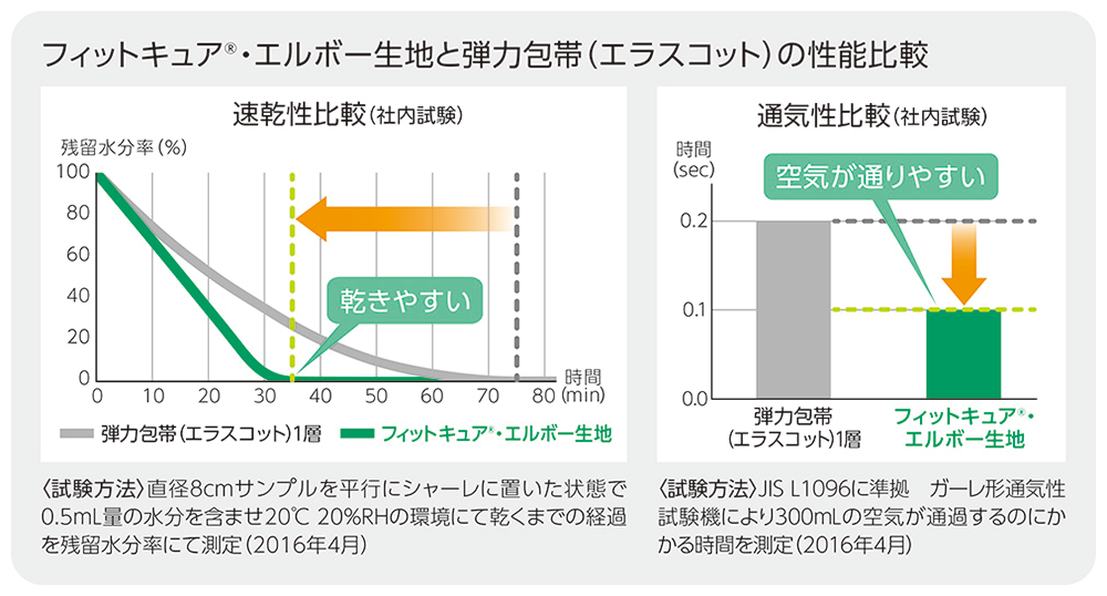 ステーカバーの肌側は吸水性が高く、外側は水分を拡散しやすい、特殊構造の吸水・速乾・通気性素材を採用。
