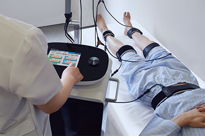 ベルト電極で下肢全ての筋肉を動かし随意運動を代用