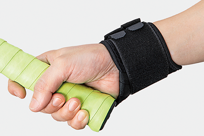 ・母指ループと二股の手首ベルトにより、片手での装着をサポートします。