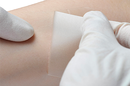 - 厚みの薄いハイドロコロイドを使用した縫合創用ドレッシングです。