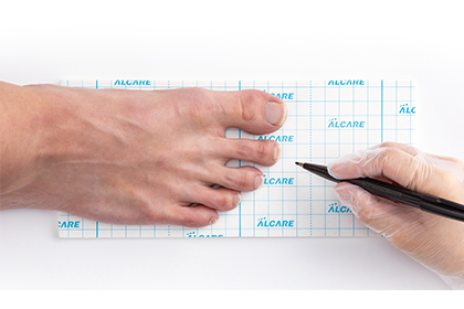- 患者さんの免荷部分・足のサイズに合わせて切って貼るだけ。ハサミ1本で簡単に患者さんの足の状態に合わせた加工が行えます。