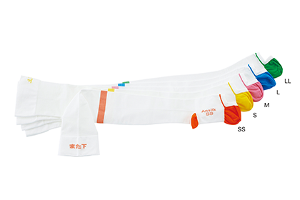 つま先、かかと、ひざ、口ゴムに色や文字で明確なポジションマーカーをつけることにより、適切な装着を誘導します。