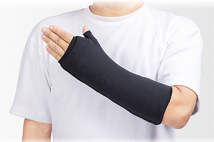 ・伸縮性を持つ素材のため、ギプスと前腕にフィットします。