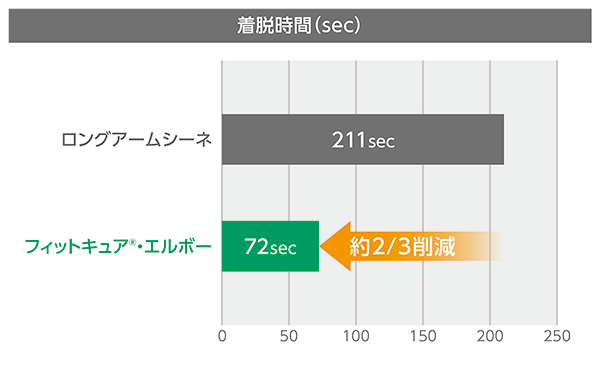 〈試験方法〉被験者自身で、硬化済みのフィットキュア®・エルボーとロングアームシーネを着脱する時間を計測する(n=4)