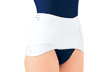- フィット性を向上させる腹部の2分割構造により、容易な腹圧調整が可能です。